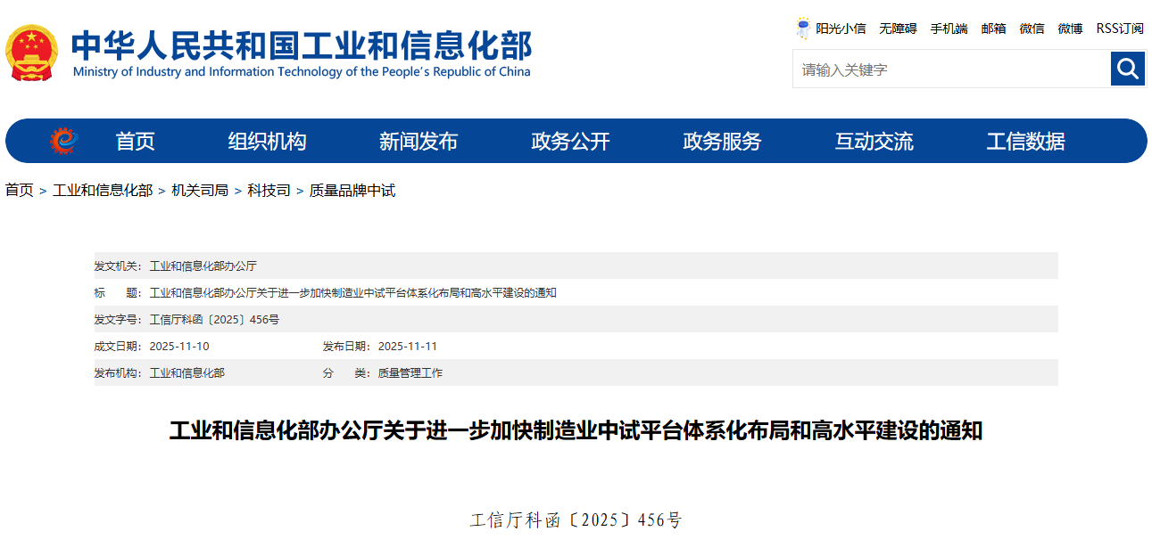 获悉,11月11日,工业和信息化部印发通知,部署进一步加快制造业中试平台体系化布局和高水平建设,明确将根据《制造业中试平台建设指引(2025版)》《制造业中试平台重点方向建设要点(2025版)》,提出到2027年底,高水平中试平台力量进一步壮大,现代化中试平台体系基本建立,多主体参与、多领域布局、多层次服务的全国制造业中试服务网络初步形成。