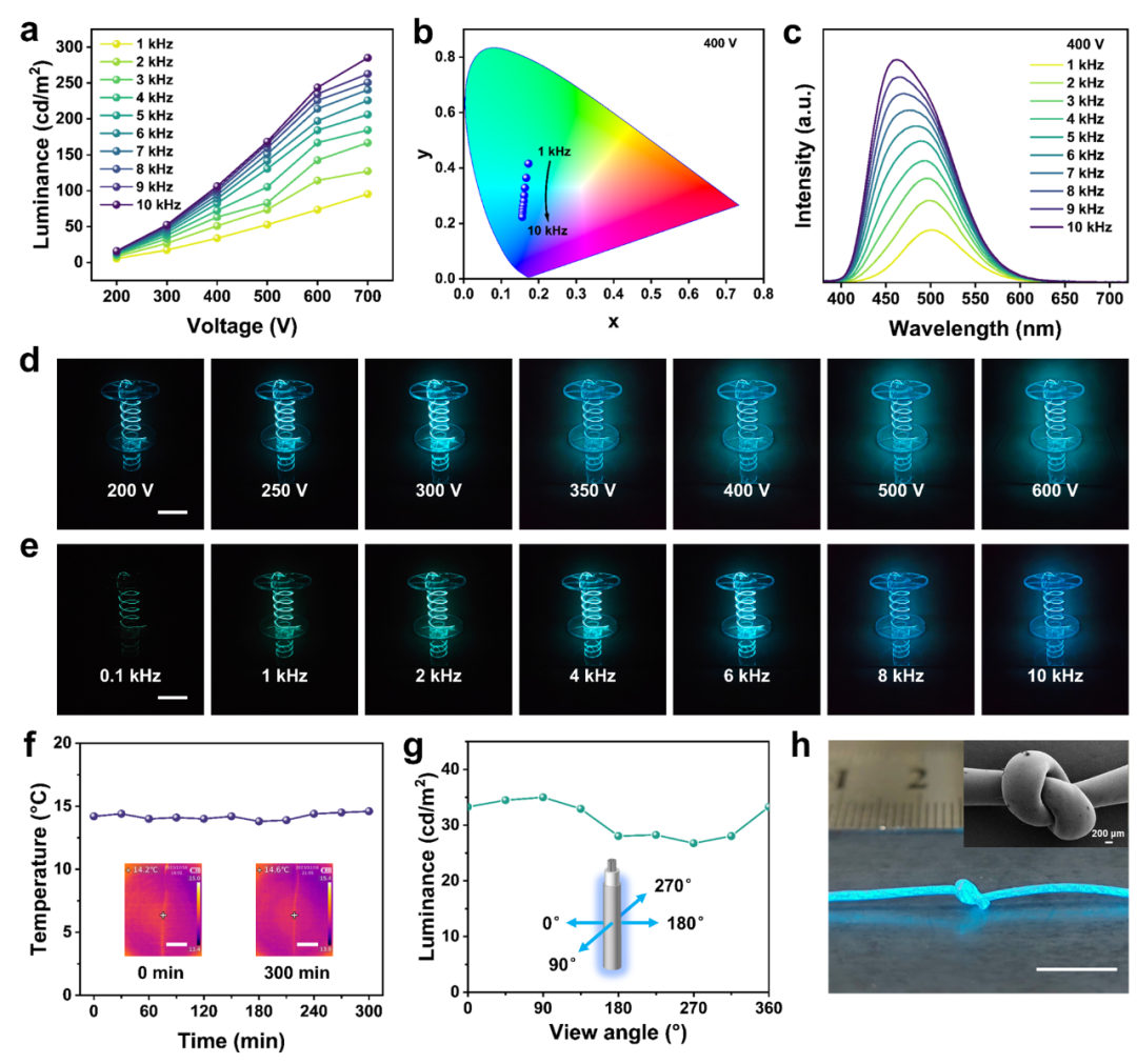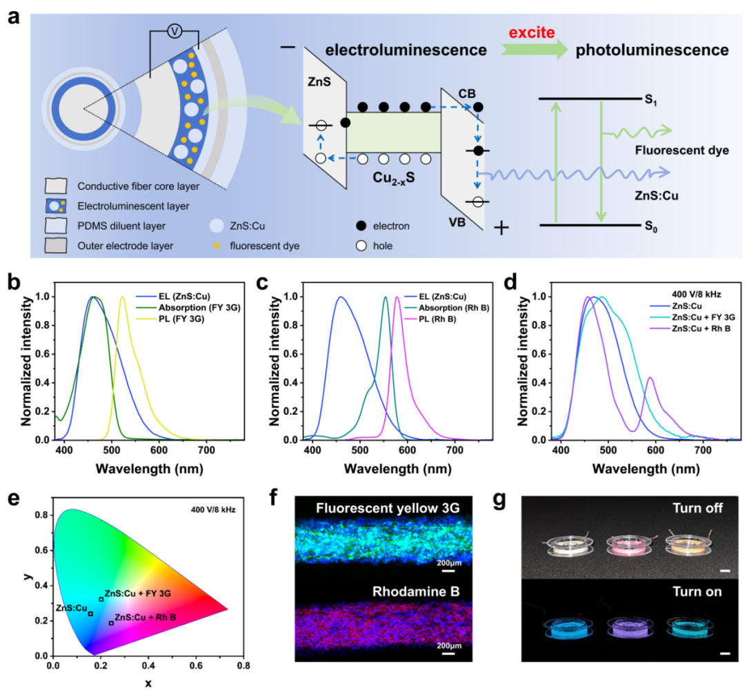 柔性显示器件是智能纺织品实现人机交互的核心功能单元。然而,传统薄膜状柔性电致发光器件普遍存在透气性差的问题,长期穿戴的舒适性受到明显限制。因此,亟需开发具备可编织性和优异柔韧性的电致发光纤维,以满足可穿戴应用对舒适性与功能性的双重需求。