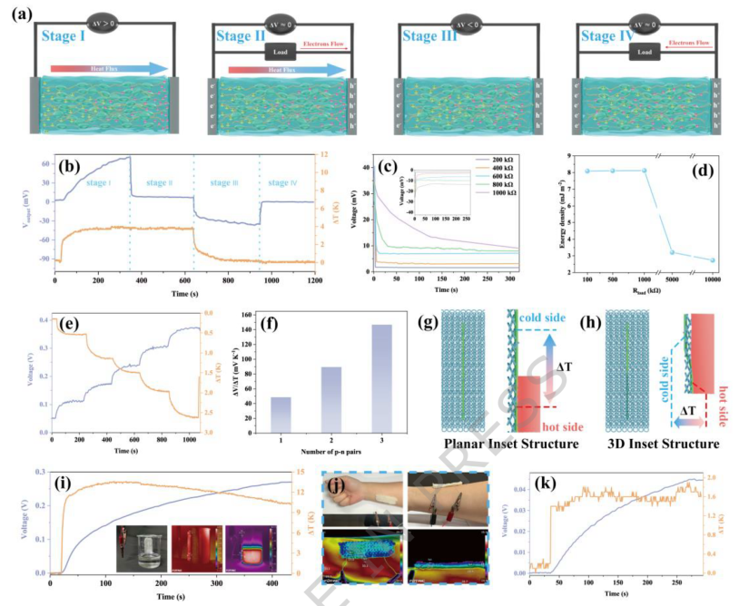 近年来,离子热电材料因具备极高的热电势而逐渐成为收集低品位热能的有力候选者。然而,目前n型离子热电材料的发展远远落后于p型材料,其种类稀少且性能不佳,这严重制约了离子热电电容器的实际应用。这一领域面临的核心挑战在于,如何在低离子负载、良好机械性能及适应常见低湿环境的前提下,开发出高性能的n型离子热电材料。