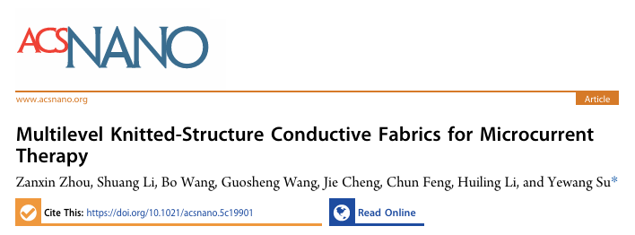近日,中科院力学所苏业旺研究员团队提出了一种用于微电流治疗的多级针织结构导电织物,该织物集优异的导电性、透气性和热舒适性于一体。为满足MCT严格的电流要求,研究团队建立了多级结构导电织物电阻-应变关系的分析模型。实验结果表明,该织物具备出色的重复使用性、耐洗性和耐磨性。作为设备级示例,导电织物被用于制作可穿戴的MCT袜子,具有大面积治疗和便携的特点。动物实验最终证明,该MCT袜子能有效促进血液循环和新陈代谢。这项发展为结合卓越透气性、舒适性和电学性能的治疗平台提供了重要进展。 相关论文以“Multilevel Knitted-Structure Conductive Fabrics for Microcurrent Therapy”为题,发表在ACS Nano上。 研究通过示意图直观展示了基于导电织物的MCT设备与基于聚二甲基硅氧烷(PDMS)设备的对比,凸显了前者在拉伸性、治疗功能、渗透性和舒适度方面的综合优势。图1b进一步阐述了导电织物的制造过程:首先将聚酯纤维与金属短纤维加捻制成导电混纺纱线,随后通过针织技术将导电纱线与聚酯纱线结合形成导电区域,并在非导电区域使用棉纱以确保舒适性。该织物展现出可拉伸、可折叠和可扭转的特性,适合用于可穿戴电子设备。 图1. 多级针织结构导电织物的展示与制备。 (a) 基于导电织物和基于PDMS的MCT设备对比。(b) 导电织物的制备过程示意图。 在研究多级针织结构的电学特性时,团队从纤维层面入手,选择了不锈钢纤维作为导电纱线中的金属成分。通过测试不同纤维比例纱线的力学与电学性能,发现随着不锈钢纤维比例增加,纱线的断裂强度和动态电阻均下降。综合考虑后,选择了Fe(30:70)纱线作为织物原料。动态电阻在拉伸过程中先降后升的现象,源于纱线内部结构从松散到紧密再到纤维断裂的变化过程。研究还深入分析了织物中因横向拉伸形成的“钩状结构”对接触电阻的影响,并建立了相应的理论模型,实验结果与理论预测趋势一致。此外,基于针织结构的几何特征,团队建立了单线圈电阻模型,用于描述横向和纵向拉伸下织物电阻的变化,并通过实验验证了模型在特定应变范围内的准确性。在弯曲情况下,由于织物厚度远小于平面尺寸,其电阻基本保持不变,实验也证实了这一点。 图2. 多级针织结构的电学特性。 (a) 纱线结构实验示意图。(b) 不同比例导电纱线的光学图像。(c) 不同组成比例导电纱线的力学性能。(d) 不同组成比例导电纱线的动态电阻。(e) 钩状结构实验示意图。(f) 钩状结构详解图。(g) 拉伸过程中钩状结构的电阻变化。(h) 拉伸过程中接触区域电阻的变化。(i) 针织结构的几何模型(左)和线圈电阻模型(右)。(j) 导电织物与线圈电阻的对比。 除了优异的电学性能,这种多级结构导电织物还展现出卓越的稳健性和舒适性。经过1000次循环加卸载测试,织物电阻变化微小,表现出良好的重复性和耐久性。在长达12分钟的超声波清洗(包括使用洗涤剂)测试中,电阻保持稳定,证明了其耐洗性。与皮肤及普通织物的摩擦测试也表明,织物电阻波动极小,具备出色的耐磨性。在舒适性方面,与普通织物和PDMS相比,该导电织物具有相近的透湿性、显著优于PDMS的透气性,以及相近的隔热性,这得益于纱线内部的微观空隙和针织结构形成的通风孔隙。 图3. 导电织物的稳健性与舒适性。 (a) 导电织物循环加卸载测试示意图。(b) 循环测试期间的电阻变化曲线。(c) 超声波清洗后电阻的散点图。(d) 与人体皮肤摩擦后的电阻变化曲线。(e) 与人体皮肤和普通织物摩擦后的电阻变化曲线。(f) 透湿性实验原理及测试结果。(g) 透气性实验原理及测试结果。(h) 隔热性实验原理及测试结果。 为验证其治疗应用,研究团队基于该导电织物制作了可穿戴MCT袜子。在志愿者测试中,袜子能施加0.1-1 mA范围内的治疗电流,且未引起热不适。实际穿着行走测试表明,袜子电阻变化微小,电学性能稳定。动物实验是验证疗效的关键:在大鼠背部使用MCT织物进行治疗,结果显示,治疗组大鼠的局部血流量、血红蛋白含量和血氧饱和度均显著高于对照组,且疗效具有一定的持续性。细胞毒性实验(活/死染色)显示导电织物对成纤维细胞活性无负面影响,组织切片分析也表明MCT处理未对大鼠皮肤表皮和真皮结构完整性造成损害,证实了其生物相容性和安全性。 图4. 使用MCT袜子促进血液循环和新陈代谢的动物实验。 (a) MCT作用机制示意图。(b) MCT袜子的光学图像。(c) 在Sprague-Dawley大鼠身上进行基于导电织物的MCT实验。(d) 大鼠MCT组(4个样本)与对照组(4个样本)血流量变化的比较;误差棒代表标准差;* 表示 P < 0.05,表示对照组与MCT组之间存在显著差异。(e) 大鼠MCT组与对照组血红蛋白含量变化的比较;误差棒代表标准差;* 表示 P < 0.05。(f) 大鼠MCT组与对照组血氧饱和度变化的比较;误差棒代表标准差;* 表示 P < 0.05。(g) 使用活/死染色法对比对照组与MCT组成纤维细胞活性。(h) 动物组织切片显示对照组和MCT组表皮和真皮完整性。 综上所述,本研究提出的多级针织结构导电织物设计,通过建立电阻-应变分析模型,为满足MCT要求同时保持优异舒适性提供了指导。织物表现出良好的重复性、耐洗性、耐磨性、透气性和热舒适性。以此制作的MCT袜子在动物实验中验证了其促进血液循环和代谢的功效,且安全性得到证实。尽管该研究取得了显著成果,但未来仍面临挑战,例如在实际应用中汗液与电