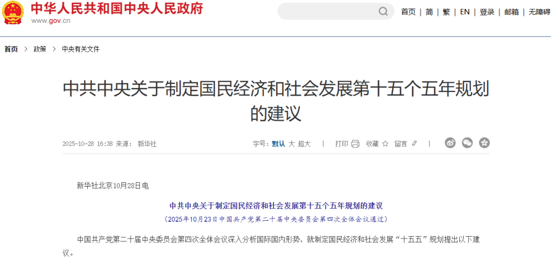 2025年10月28日,《中共中央关于制定国民经济和社会发展第十五个五年规划的建议》全文发布,第四部分用较大篇幅涉及科技自立自强,并且专门提到科技成果转化相关工作,原文表述如下: